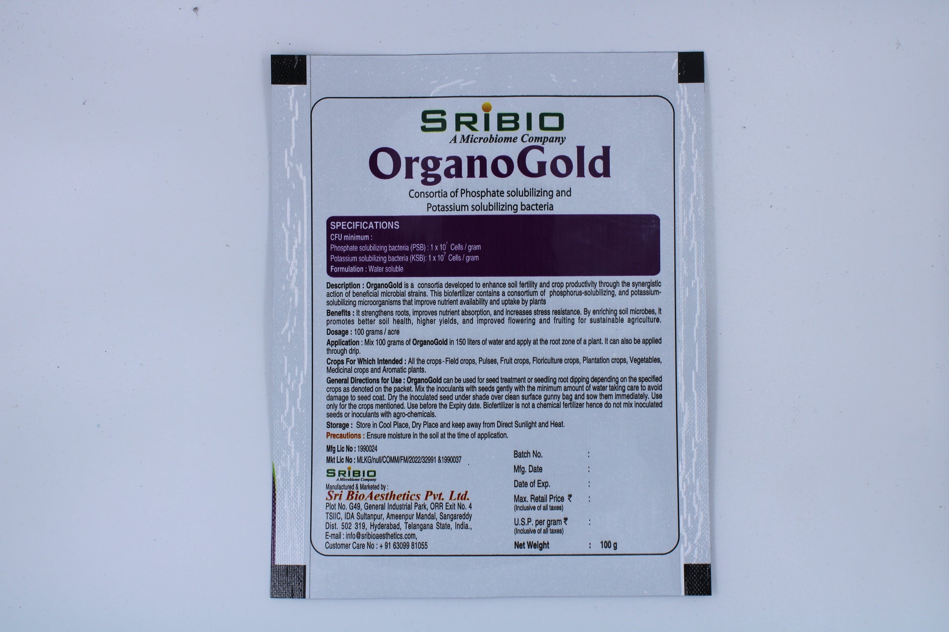 Application : Mix 100 grams of OrganoGold in 150 liters of water and apply at the root zone of a plant. It can also be applied through drip