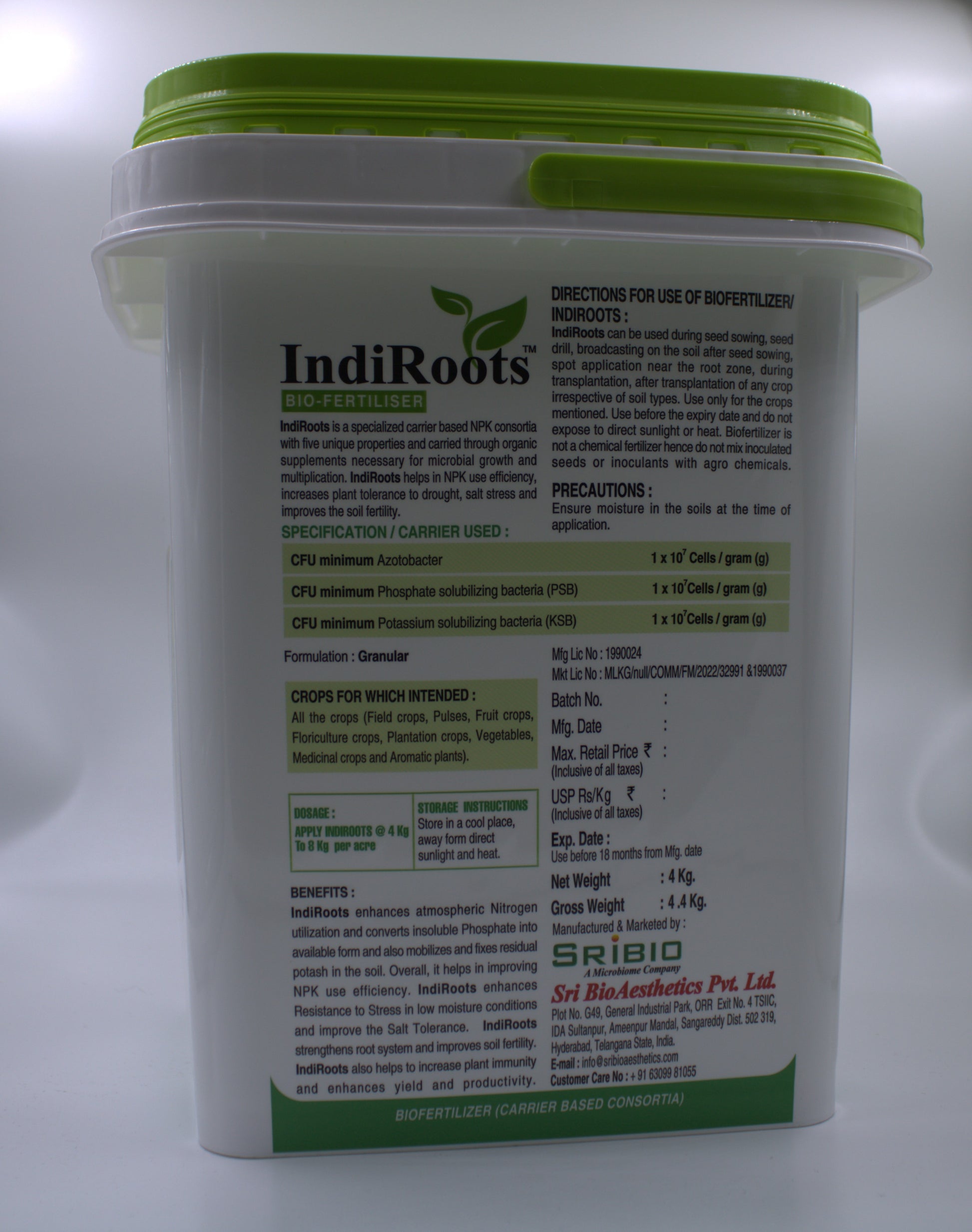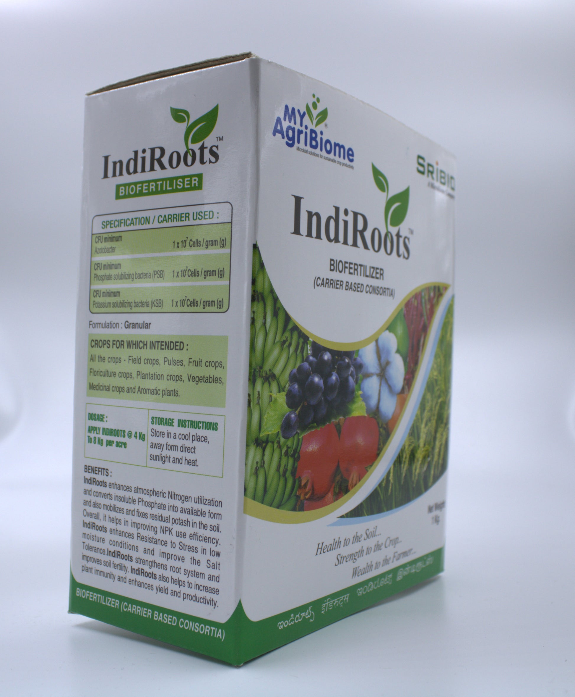 IndiRoots can be used during seed sowing, broadcasting on the soil after seed sowing, spot application near the root zone, during transplantation of any crop irrespective of soil types.